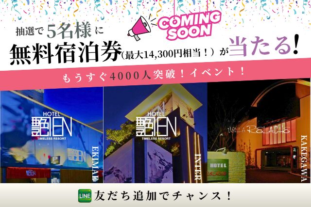 🎁4000人突破記念イベント開催決定!抽選で5名様に無料宿泊券プレゼント✨