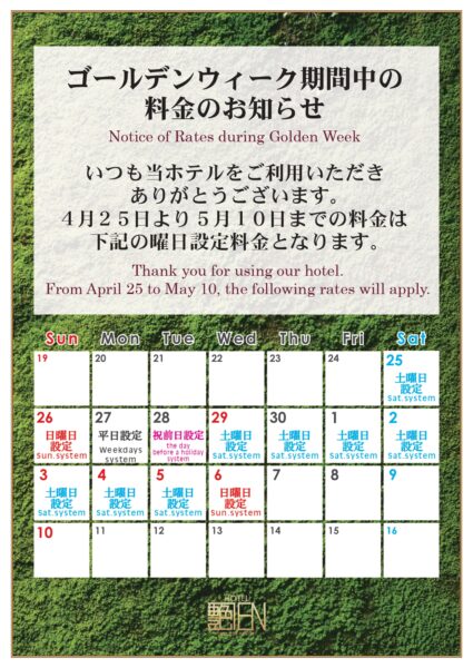 🗓️2026ゴールデンウィーク期間中料金のお知らせ🗓️